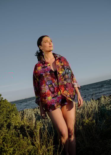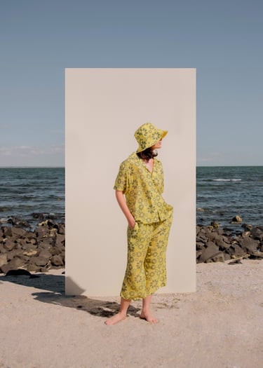 The collaboration between K.A.L.A Studio x Mulyana in Volume 1 consists of five patterns: Jellyfish, Coral Nation, Lonely Creature, Oopsy Daisy, and Cheerful Creature. These designs are presented in eco-friendly materials, including TENCEL™ and 100% Cotton. The choice of materials also serves the purpose of contributing to the reduction of non-environmentally friendly waste.