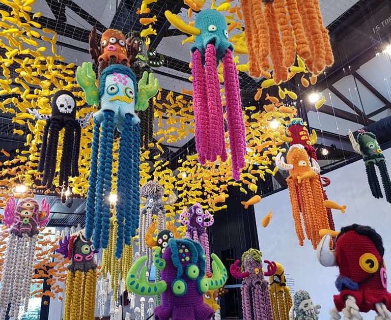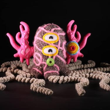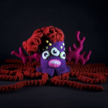 The Mogus is short for the Sigarantang Octopus Monster, an octopus character representing the artist's alter ego, which comes in various expressions and colors. The Mogus is visualized to inhabit coral islands. Since 2008, each Mogus has been hand-knitted. The unique characters it embodies and the way it is crafted truly enhance the depth and charm of the artist's imaginative expression.