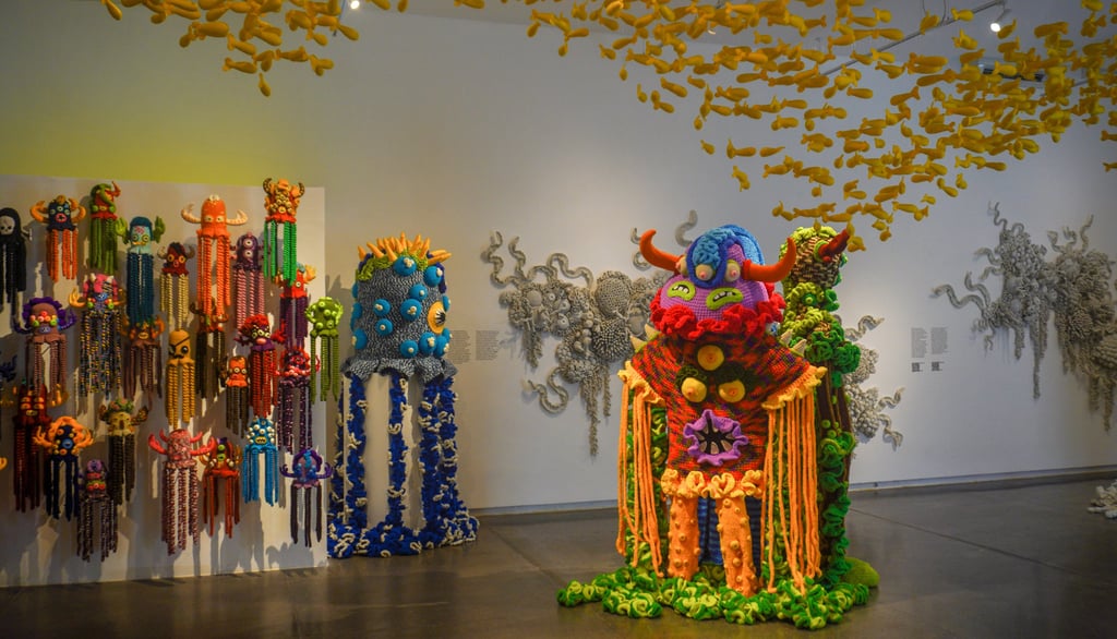 The exhibition A Man, A Monster & The Sea by Mulyana runs from 22 November 2024 to 26 January 2025 at Orasis Art Space. It explores the profound connections between humanity, identity, and the marine environment through the vibrant and transformative world of Mogus, Mulyana’s monster alter ego. With intricate crochet installations and modular designs, the exhibition invites audiences to reflect on the fragility of nature and the depths of human emotion.